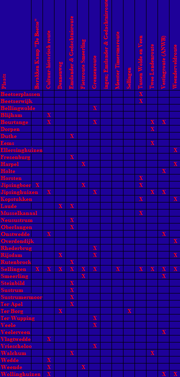 Onderstaand de bij ons verkrijgbare Routes met hun afstanden, en hoofdkenmerken.